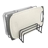 - BUILT TO LAST: this cutting board rack is made of heavy duty flat steel with a durable rust-resistant coating, it withstands daily use and lasts for years. The round edge design helps protect against scratches, and the anti-skid backing keeps everything firmly in place.