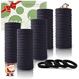 1Bessrung100PCS Black Hair Ties, Seamless Cotton Thick Black Hair Band, Elastic Hair Ties No Damage Ponytail Holder